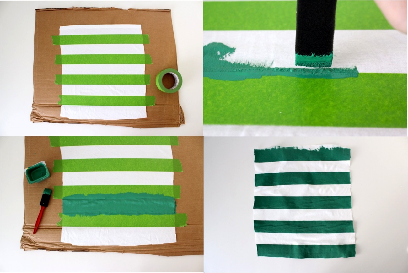 The brother to Stripes above, this would be great on a shirt pocket….or side pockets on pants. Simply tape stripes on the diagonal, paint, dry, and peel. Leave it as-is or tape stripes on the other diagonal to make gingham checks.