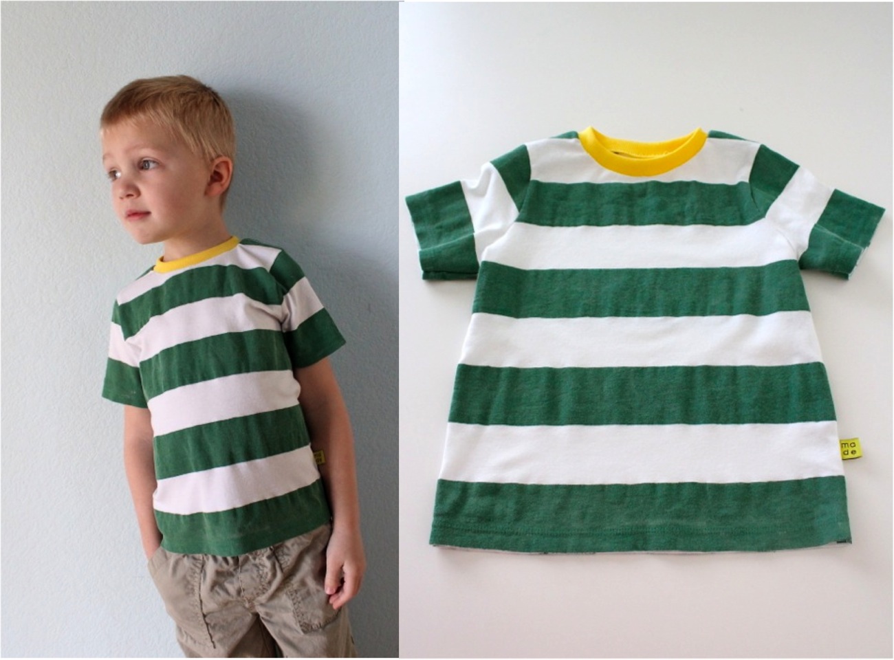 Nonetheless I pressed forward, washed the fabric, then sewed a Basic Tee. And…it kind of worked. Well. It’s a Work in Progress. It’s still kind of wavy but I’m sure he’ll wear it.