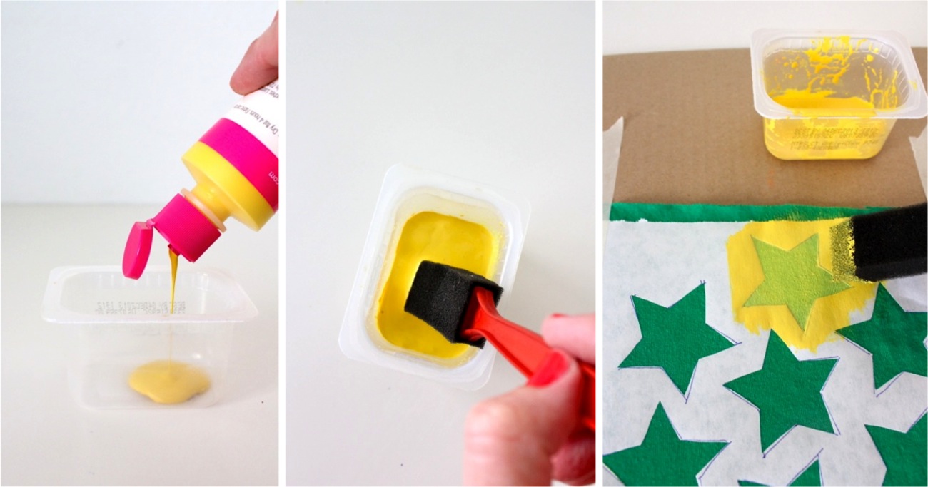 If you don’t have fabric paint you can use Acrylic paint, which is very inexpensive and comes in every color imaginable (metallics too). When using acrylic paint on fabric, however, it’s good to mix in a Fabric Medium such as this to make the paint a bit softer for wash and wear. Of course if you’re antsy like me you can just paint a shirt without it, and your daughter will still love it.