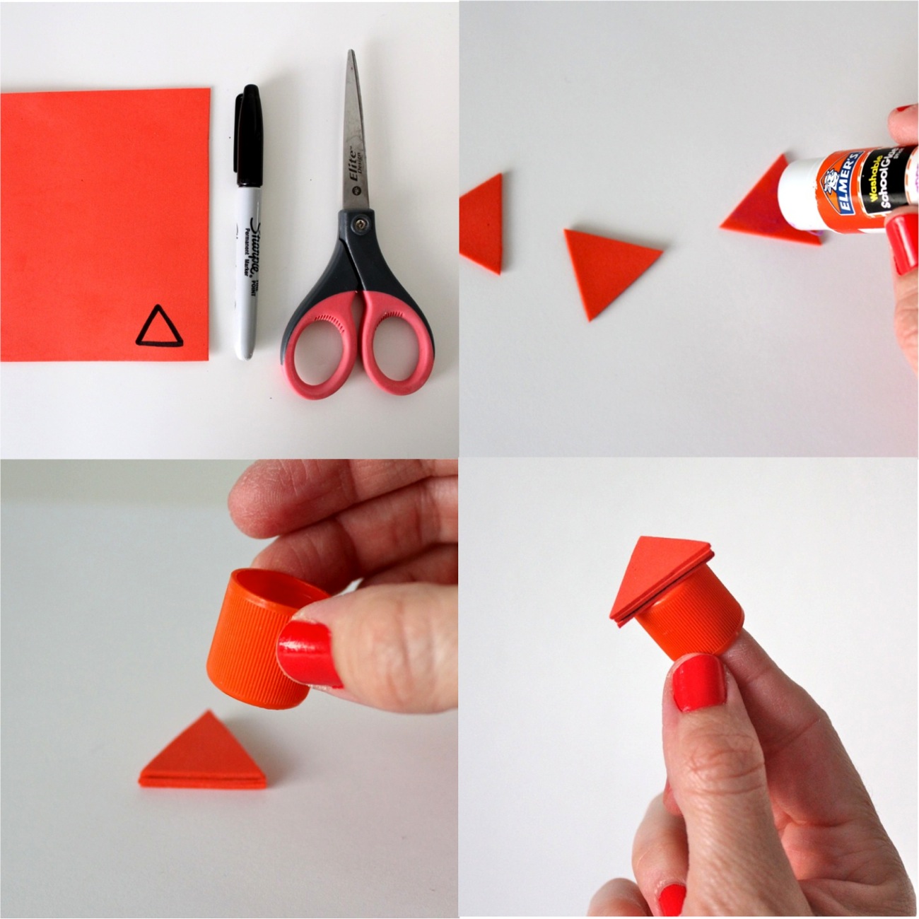 Cut a shape from craft foam. If the foam is pretty thin, cut a few layers of the shape and glue them together. Then glue the Glue Stick lid to your foam shape and you have a stamp!