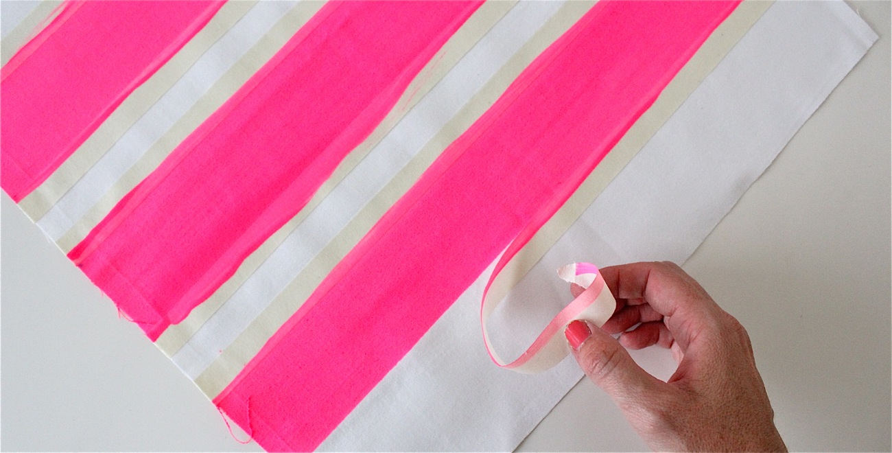 Fluorescent Pink?! Yes (but not for Owen). I love wide stripes and I’ve painted them before on woven fabric here: