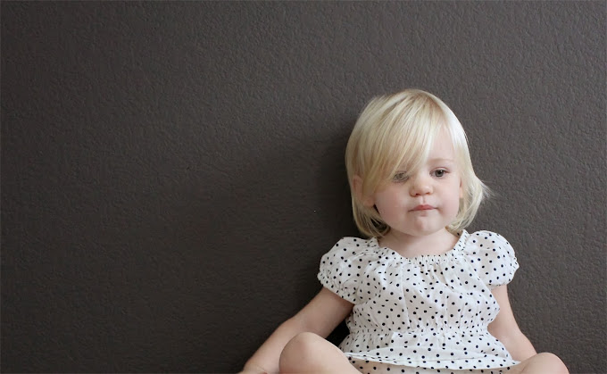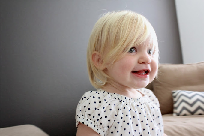 So, to help her look like an almost 2-year old I chopped off the mullet and gave her a bob.