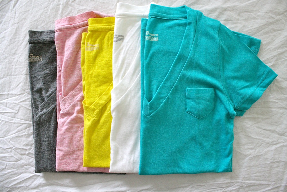But open my drawer and you’ll find the same T-shirt in every color (and sometimes 3 versions of white cause you know how stained those get over time). I love these “boyfriend” Tees from Target! I wish they’d carry the bright yellow one again. Hey, when you find something that works, snatch it up!
