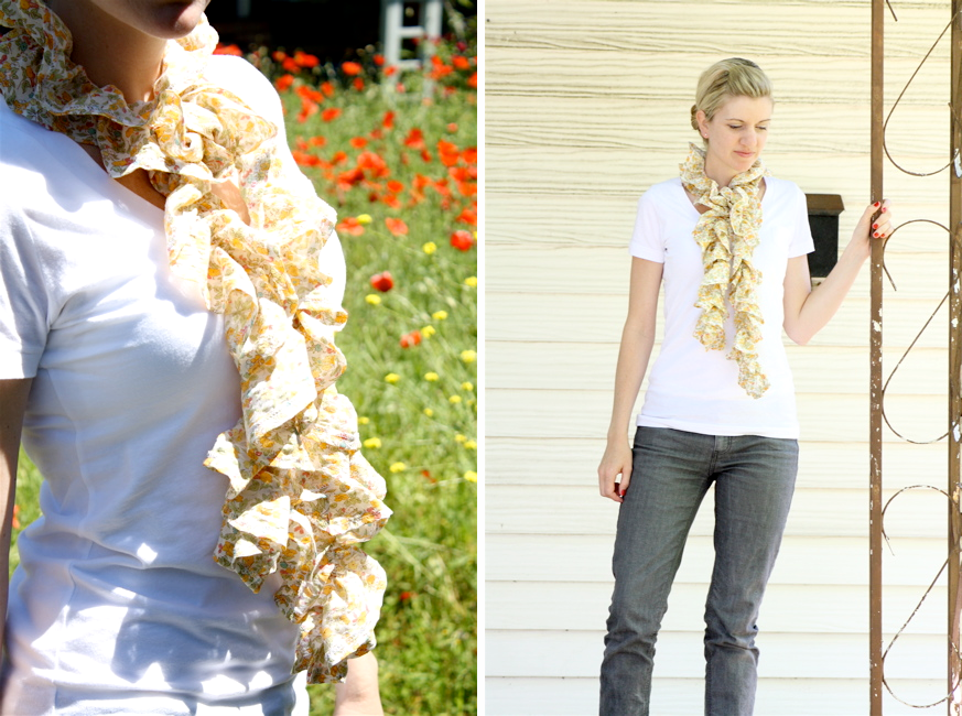 I wear them with all those Target Tees! (Ruffled Scarf tutorial):