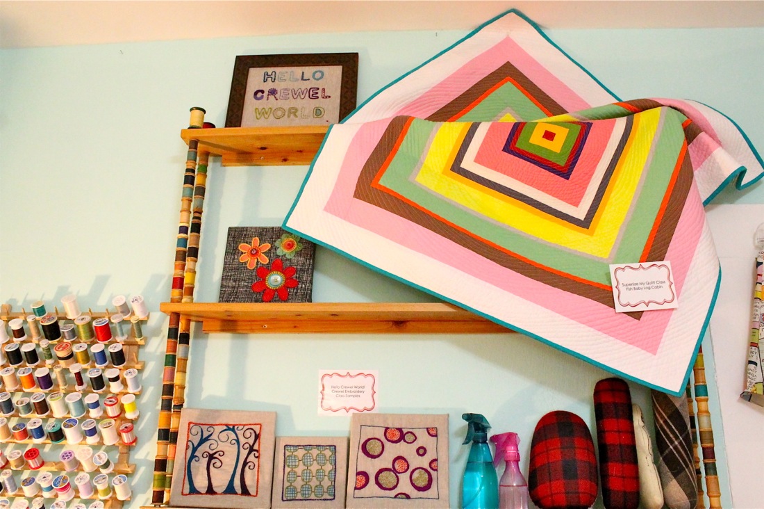 With Mr. Mom home with the kiddos, I packed up a bunch of these (why do things in piles and rows look so pretty?), I threw on my favorite solid colors, actually did something with my hair other than a bun, and headed to Stitch Lab for the night.