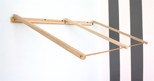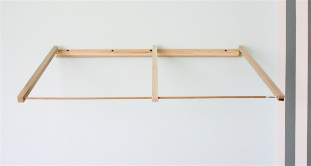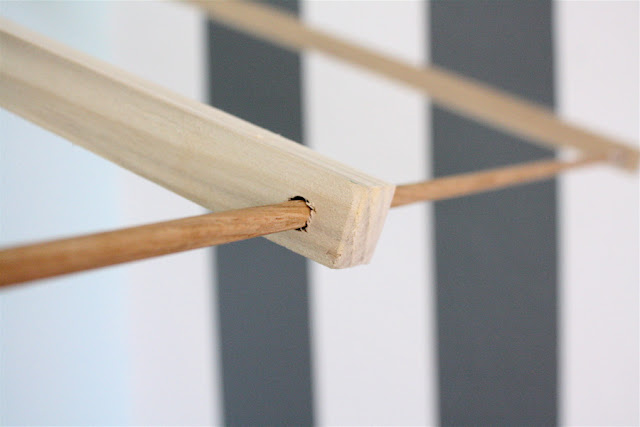 We started by drilling holes through the 3 rectangular dowels, threading the round dowel through, and gluing it in place on the ends.