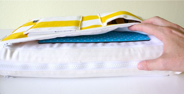 I added two small pockets to the front. One expands slightly at the bottom and is the perfect spot for my portable mouse (because a mouse always makes photo editing easier).
