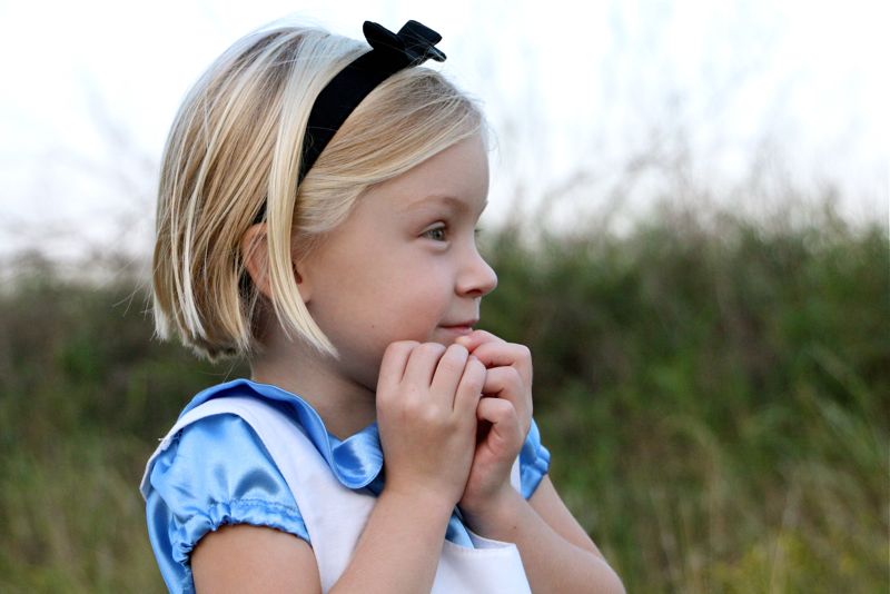 I ensured her that she’d make a really cute short-haired Alice and that it would look just as good! But she bawled and bawled.