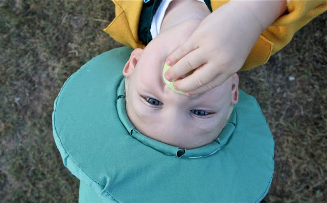 But here’s how it looked at our church’s Trunk or Treat last Saturday. The brim is super bunchy, and squished together (though I love this picture):