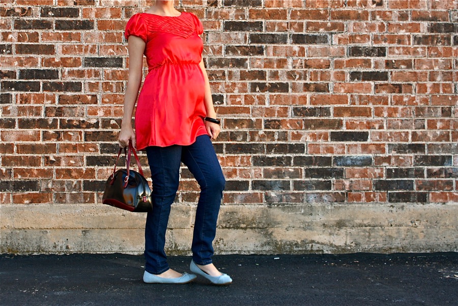 One perk of being pregnant these days is you can easily find non-maternity shirts that cover your tummy…and are still cute. Long Tees, babydoll dresses, tunic tops—yes! Thank you Forever 21, H&M, Target, and Old Navy.