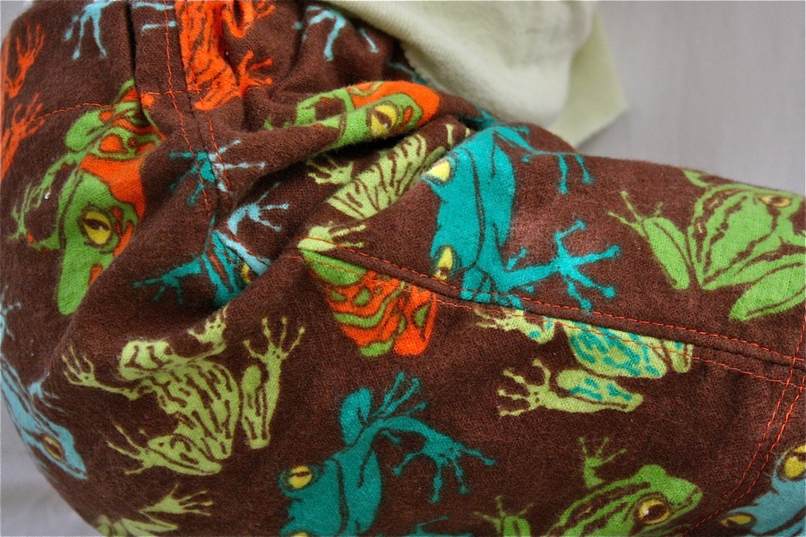 So on this particular shopping day, we were on the flannel aisle and Owen spotted the frog fabric and got excited. I decided that a 1/2 yard can’t hurt. No one really sees jammies anyway; I’m a little more lenient with what my kids wear to bed. Lucy however, was begging for a real bad Princess Tiana fleece print which I definitely vetoed. Sorry Luce.