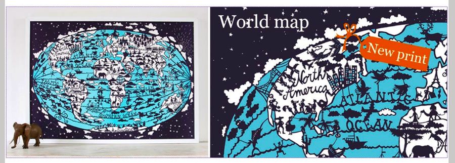 Famille Summberbelle’s latest is a World Map. Totally cool. It would look great in a boy’s room or a family living room area.