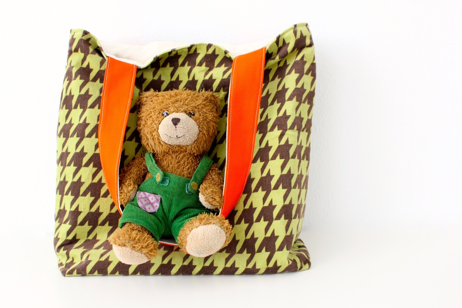 So when Owen brought home a very tiny bag for the bear and the books, I thought I’d make one for his teacher too. It was one of the first projects I sewed on my new machine. Woohoo!