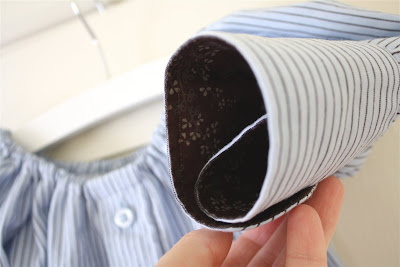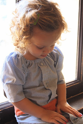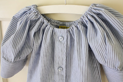 And I love how the sleeves turned out. I moved-in the sleeve buttons on each cuff to make it smaller for little arms. And they really puff up adorably on a little girl: