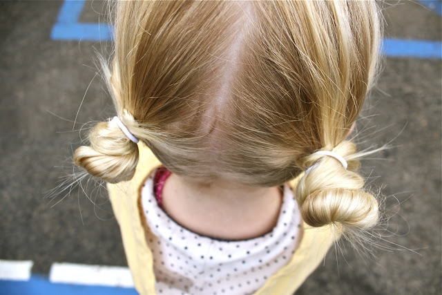 But we won’t be having the blond/long conversation anymore because today she had an impromptu haircut! The days of combing tangles are in the past! (for a few months at least).