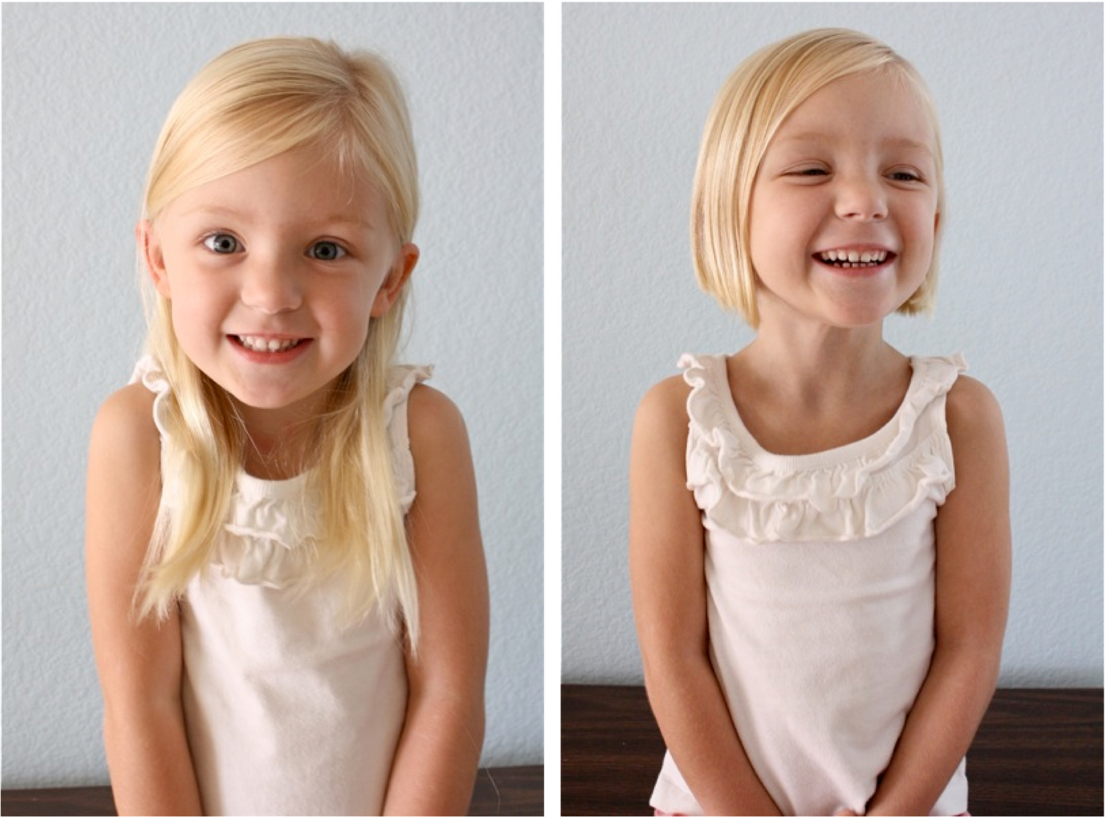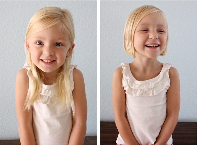 I’m gonna miss her ponytails and buns but I always love her with a little bob. She really looks like a different kid.