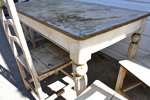 Before we moved to Texas almost two years ago (has it been that long? wow), well, I made an impromptu stop at a garage sale and stumbled on a vintage table and set of 4 chairs. I had been looking for a dining table for the new Texas house (since we’d finally have room for one). And when I saw the potential in this old diamond, I left some “hold” money with the seller and quickly drove home to grab my husband and the truck. Casey scratched his head at my purchase but I told him to trust. And like the wonderful husband that he is, he did.