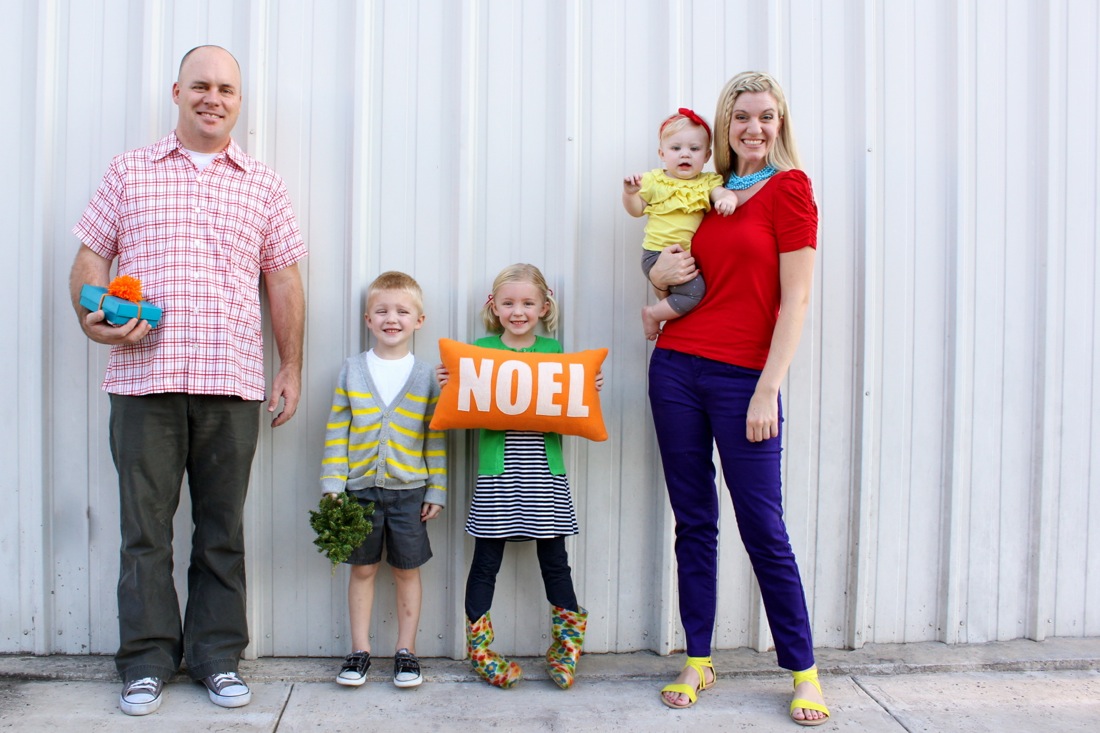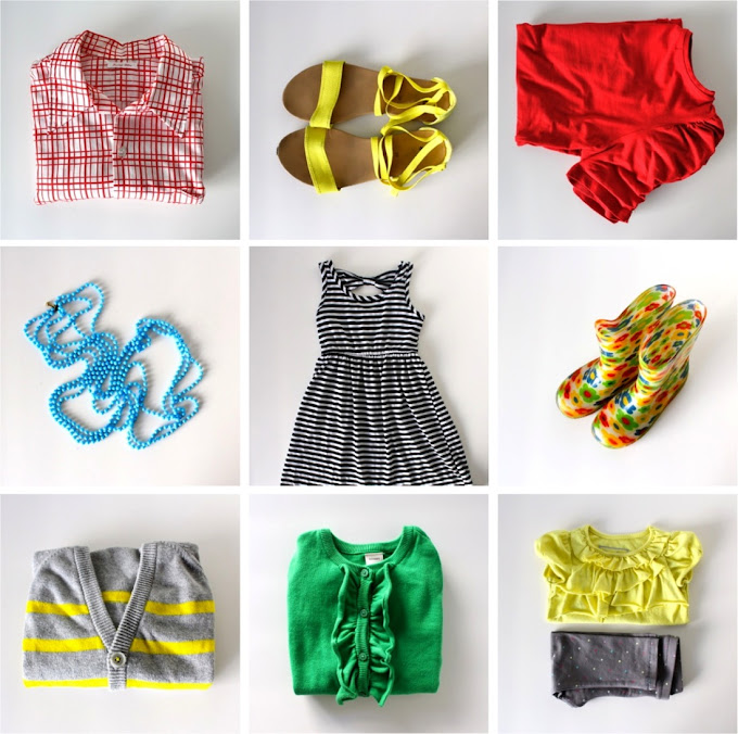 I pulled together some bright colors and was happy that everything came from our closets! The only item I purchased was the yellow/gray cardigan for Owen (he grows faster than I can sew and shop).