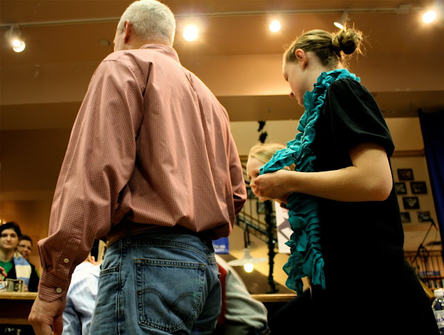 Courtney (middle) and Jade (right) were troopers, and got there early to buy books and save a seat on the wood floor. Benefits of living furthest away, for me?