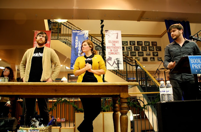 at one point we were warned that it may be a fire hazard but for no one to panic and just skooch in closer, away from the aisles. The Book People employees were great hosts, with an easy going sense of humor.