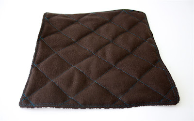 6. Turn it right-side-out and top stitch around the edges, stitching the opening shut. Then quilt away in any way you’d like. Traci did lines, I top-stitched along the fabric pattern above, and I stitched a diamond look for the set below.