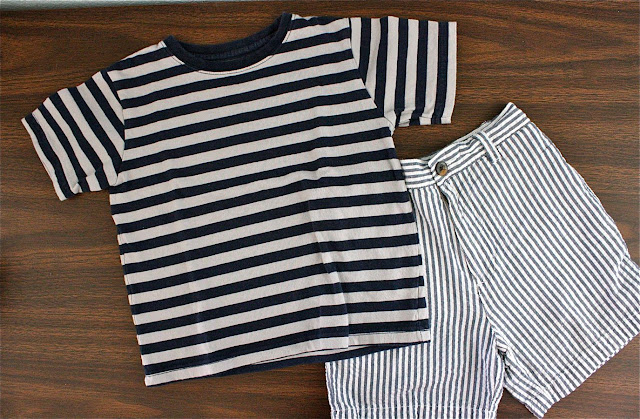 And even looks cute with mis-matched stripes (above and below photos, Thrifty Finds: Boy Edition)