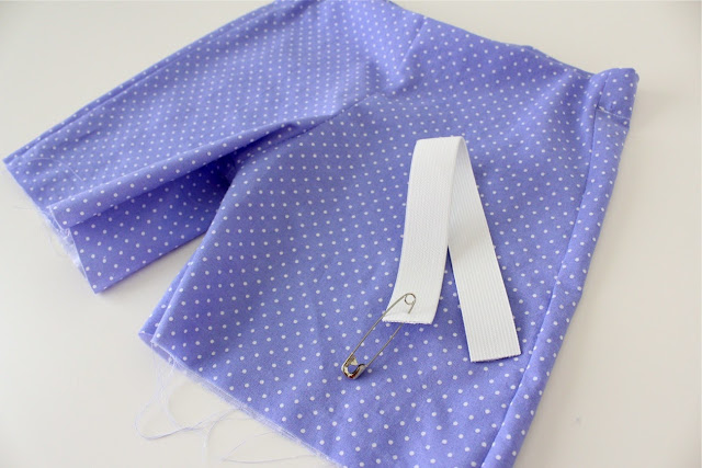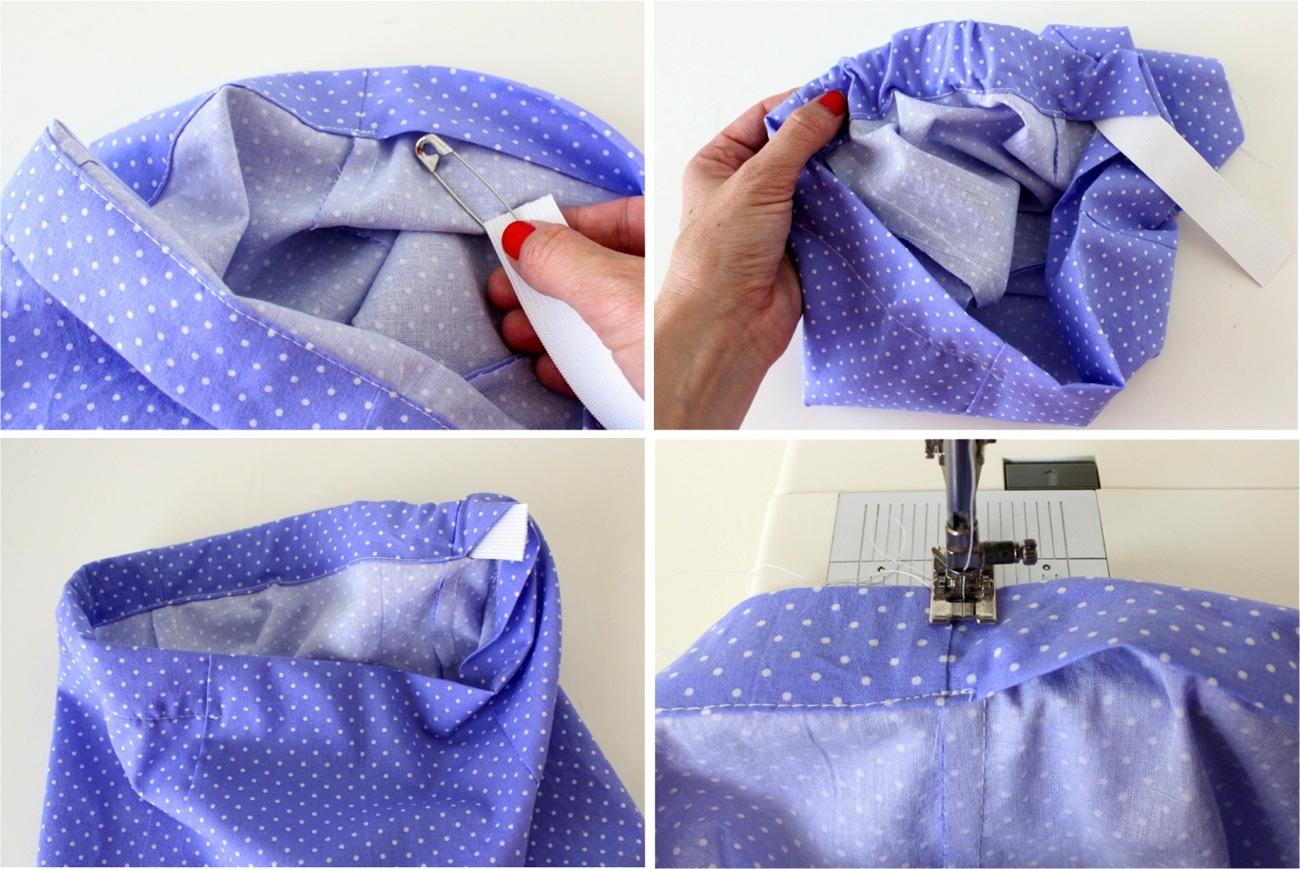 Attach a safety pin to one end of the elastic and start stringing it through the waistband.