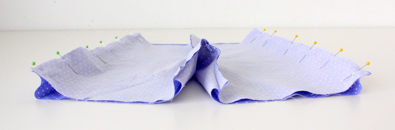 Now pin the side seams together. Pull the first side seam over so it reaches the Back side seam and pin, then pull the other side seam over and pin.