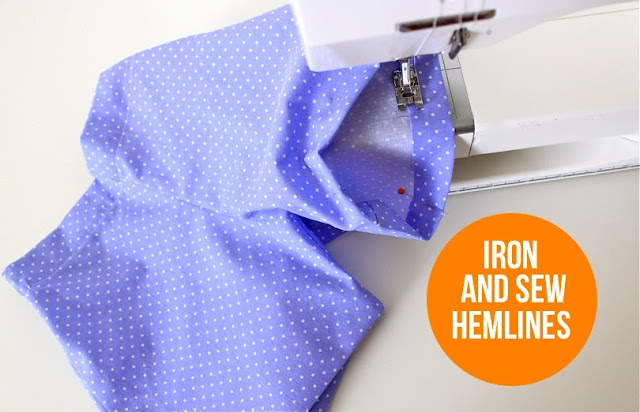 Iron the hemlines under a 1/2 inch and then another 1 inch and sew them in place.