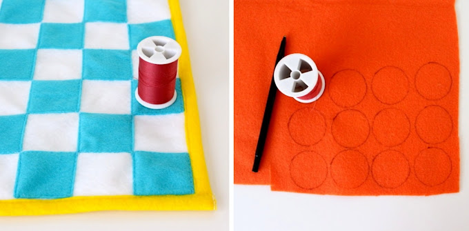 My family was big on road trips and games growing up. But unless we were sitting at the table or on the floor, pieces were falling everywhere. So why not make the games out of felt?! Then you can take ’em along wherever you go!