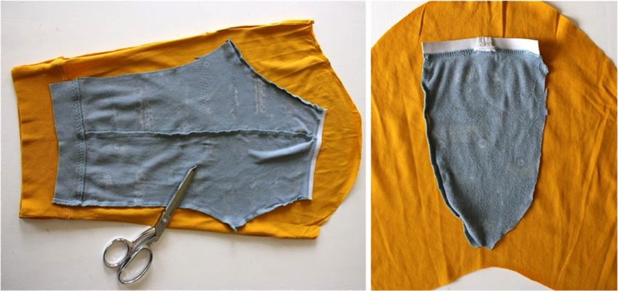 * I cut out a front and back for the shirt, using the existing hem of the shirt for my new hem.
