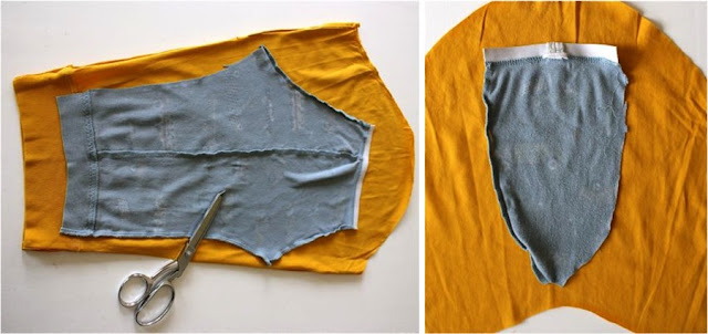 * I also used the long gold sleeves to cut out two pant legs, using the existing cuffs of the shirt for the new cuffs of the pants.