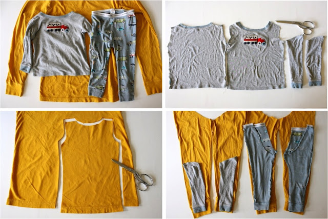 * Then retrace the sewing steps of the old pjs and sew the new ones together: