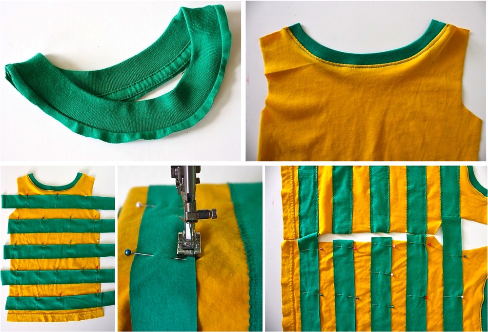 * Make sure you line the stripes up evenly on the front and back of the shirt before sewing them in place, so that they match up at the seams and look nice.