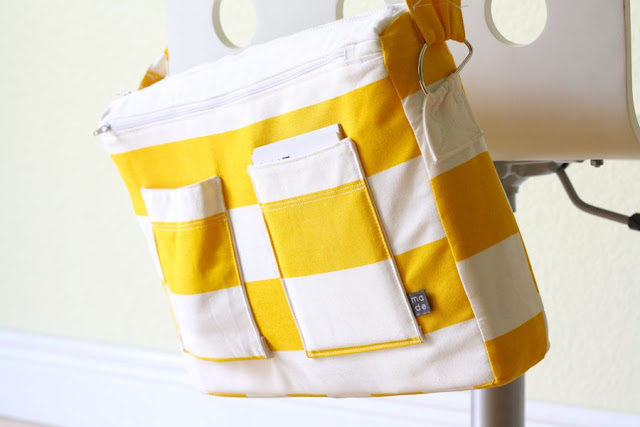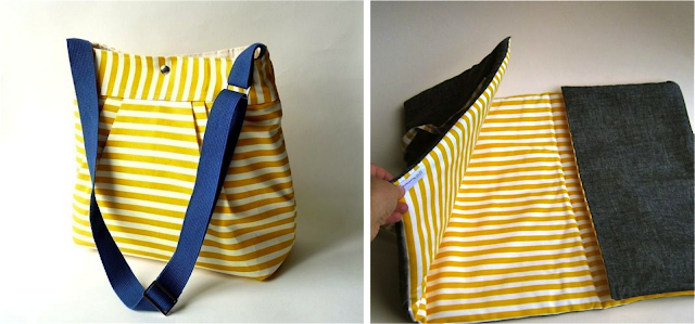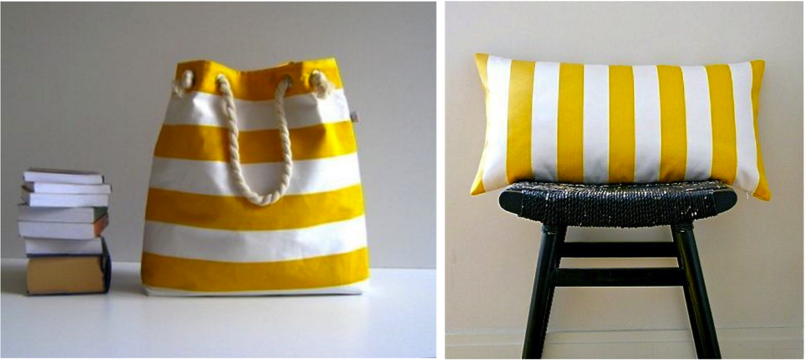 Sadly, you can only buy IKEA fabrics in their store (no online shopping). And it’s not like they’re the most fabulous fabrics ever invented. But they’re pretty wonderful. So if you know someone who lives near an Ikea you might ask them to buy you a yard or four….or search around for other options. Stripes are obviously one of the oldest tricks in the book. So I’m sure yellow/white fabric is easy to come by. I just love the weight of the Ikea stuff. It’s a heavier cotton, twill-like fabric with stripes printed on top. It’s the perfect weight for bags, pillows, and items that need more structure. And, it looks like many of us had similar ideas. Ready for an overload of stripes? Here we go….