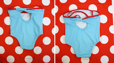 and then, I added a lining to the front piece. This white fabric is something I found at Joanns when I first got the urge to sew a swimsuit. This was the closest thing to lycra I could find in their stores. And since I hadn’t discovered Spandex World yet, I bought it. In hindsight though it makes the perfect lining!