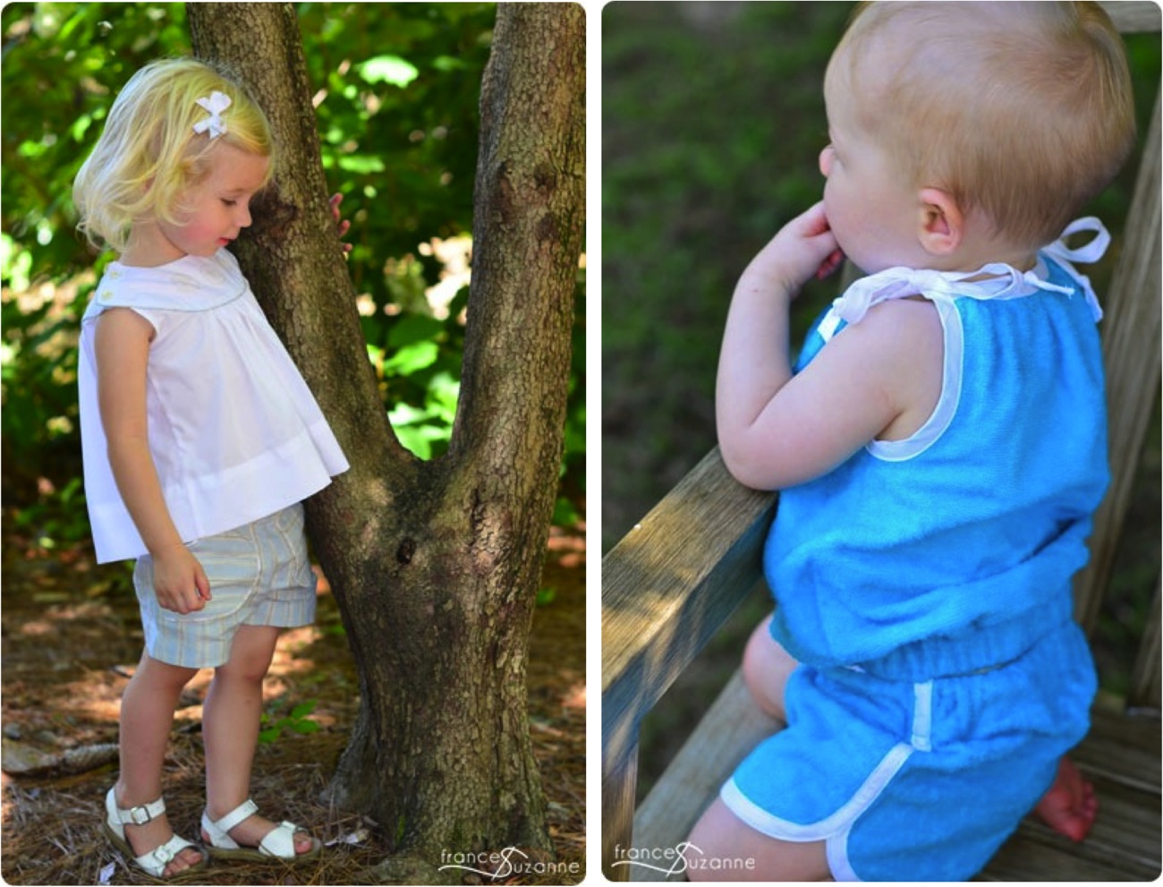 Ashley from Frances Suzanne sews mostly for her two nieces, and aren’t they darling? A whimsy summer look on the left and eek! terry cloth! on the right. How cool is that?! I love it. And with a matching top too.