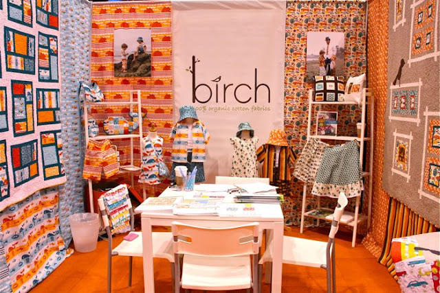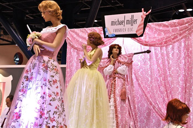 Near Amy Butler was the Michael Miller display. Not as beautiful as the layers and layers of white ruffles from the Spring show but kind of retro cool.