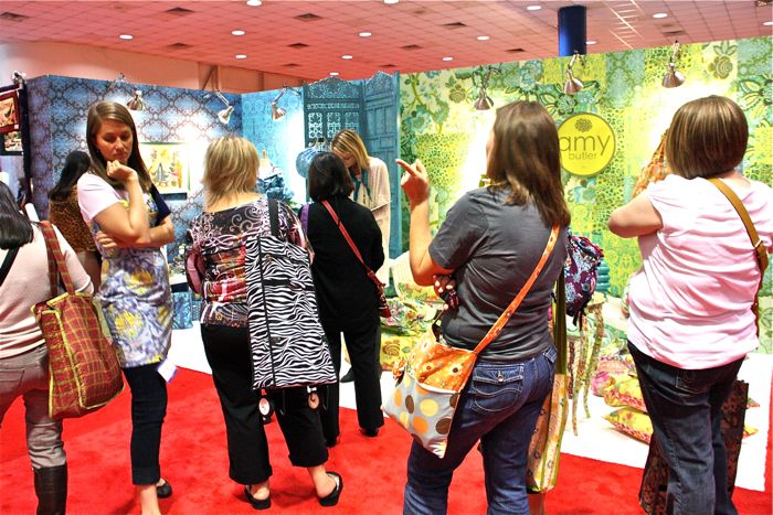 Quilt Market is a fabric and sewing trade show, not open to the public, where Designers, Distributors, and Buyers meet. The top names in fabric, patterns, sewing machines, notions, and quilting are there….and press people like little ‘ole me get to snap photos, wander around, eat cake, and chat it up. Fun times! And total sensory overload. By the end of Saturday, I could not look at another geometric shape, or color.