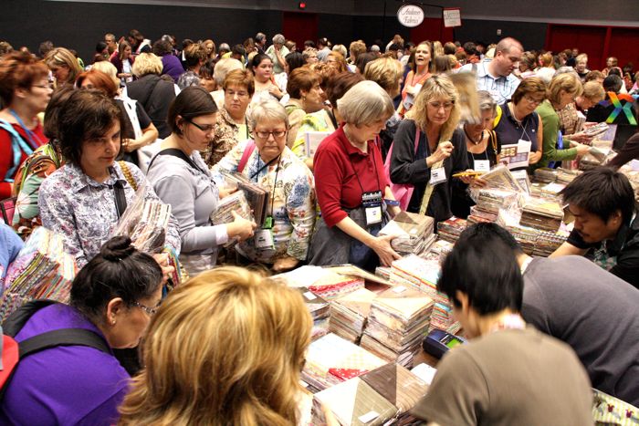 Women were everywhere and mostly, around the Moda and Kaufman tables. Seriously, you had to aggressively shove your way through.