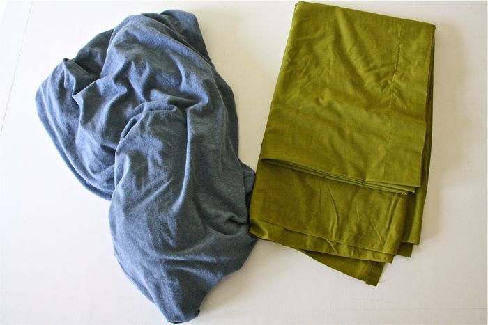 One very soft jersey cotton knit, one olive green cotton woven. Both will make excellent fabrics for a dress or ruched leggings.