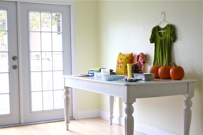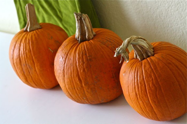 I’m sure you’re wondering why real pumpkins were at a thrift store? Well, they weren’t inside but outside on the lawn, about 60 of them, with a sign that said “FREE!” So I grabbed a few for our kitchen table.