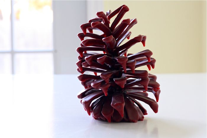 For the Fall, this wax-covered pinecone caught my eye. And a cute older woman stopped me in the store to explain how the process works (she used to work in a candle shop). She said they used to do multiple layers of wax dipping but one of you tipped me off to this crayon-covered version tutorial that looks really fun and brilliant!