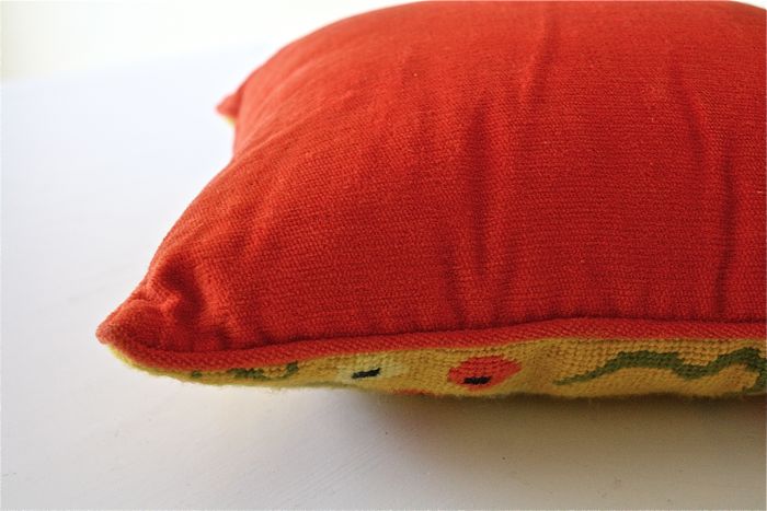 This pillow is a great mix of vintage modern. Velveteen on one side,