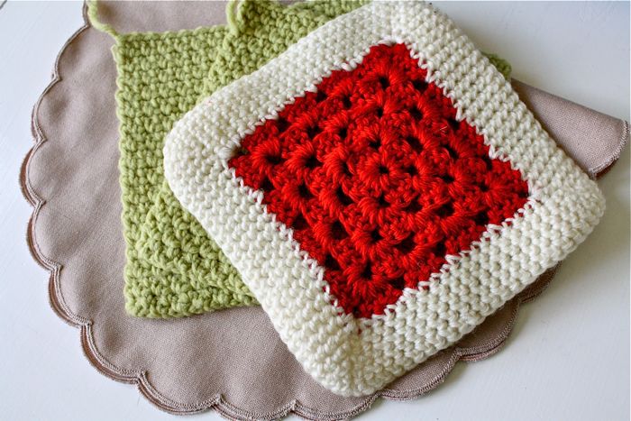 First we have potholders and place-mats. I love a good crocheted item and I think the red/white one will make a cool pocket on a dress or skirt.