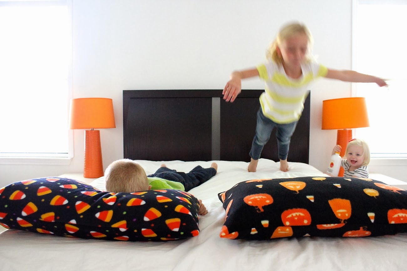 I surprised the kids with their new pillowcases when they got home from school and they dove in, loving the cozy fleece.