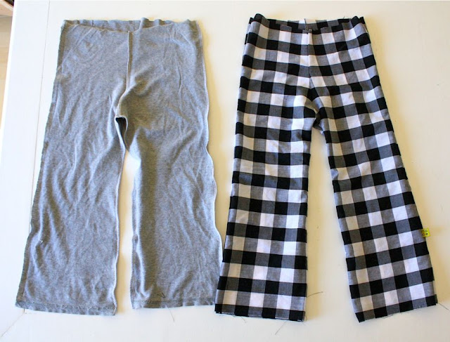 Make sure the lining pants are inside out, and the outer pants are right-side out. And tuck the lining pants right inside of the outer pants!