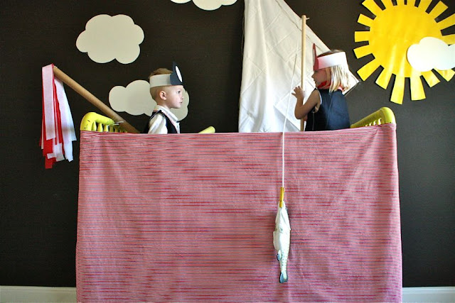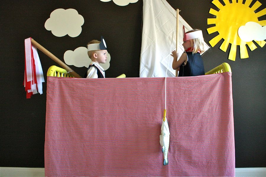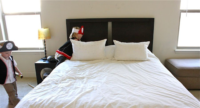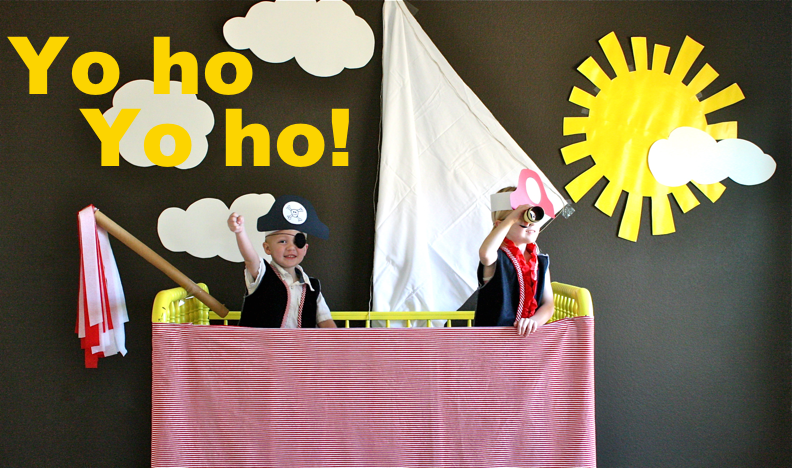 The kids were super excited when they walked in my bedroom and saw a pretend pirate ship (old baby crib) and pirate gear. And I was happy that it was the easiest project to put together, with the greatest returns from them!