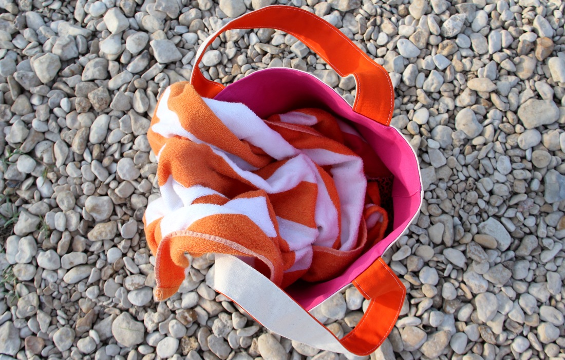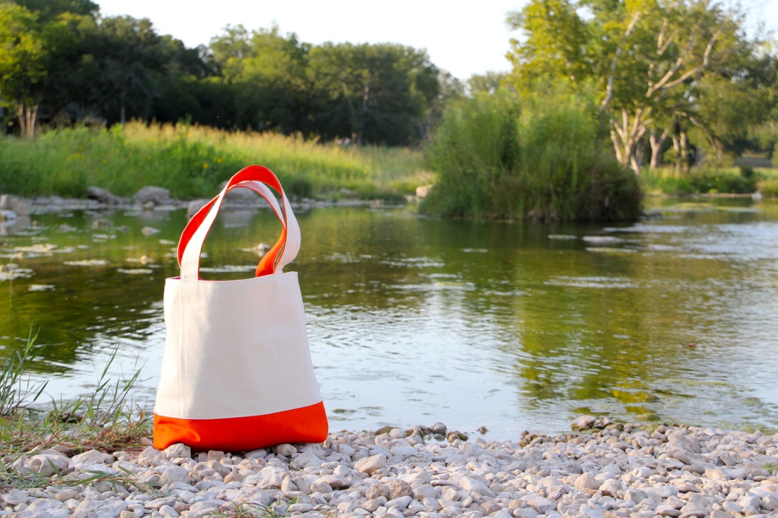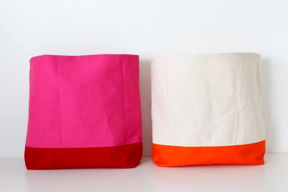 The reversible bag is basically two separate bags, sewn together at the top. If you don’t care about the reversible option, use a more lightweight fabric (maybe a cute print) for one of the bags and it will simply be a lining.