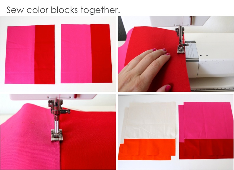 • With right sides of the fabric together, place the smaller rectangle on the larger rectangle and sew them together with a 1/4 inch seam allowance.